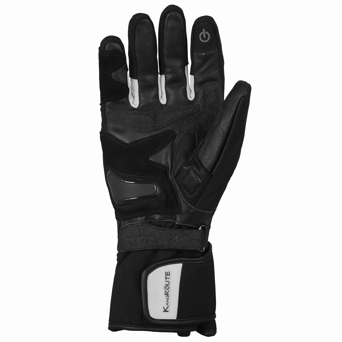 Guantes largos de moto en tela técnica y piel de vacuno con extrema protecciones, impermeables y transpirables.