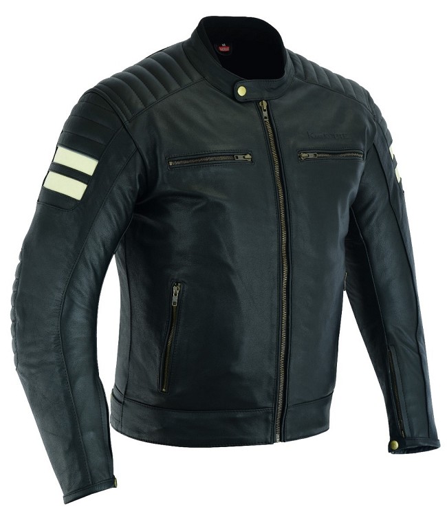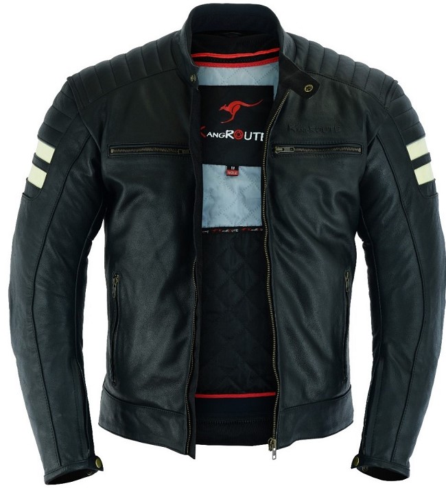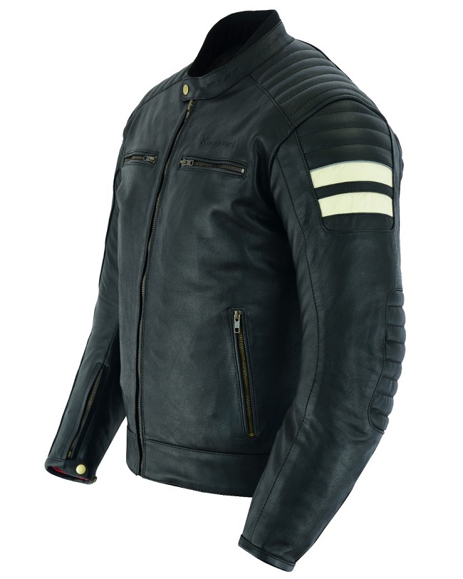 CHAQUETA DE MOTO EN PIEL ESTILO VINTAGE NEGRO CON FORRO Y PROTECCIONES CE EXTRAIBLES