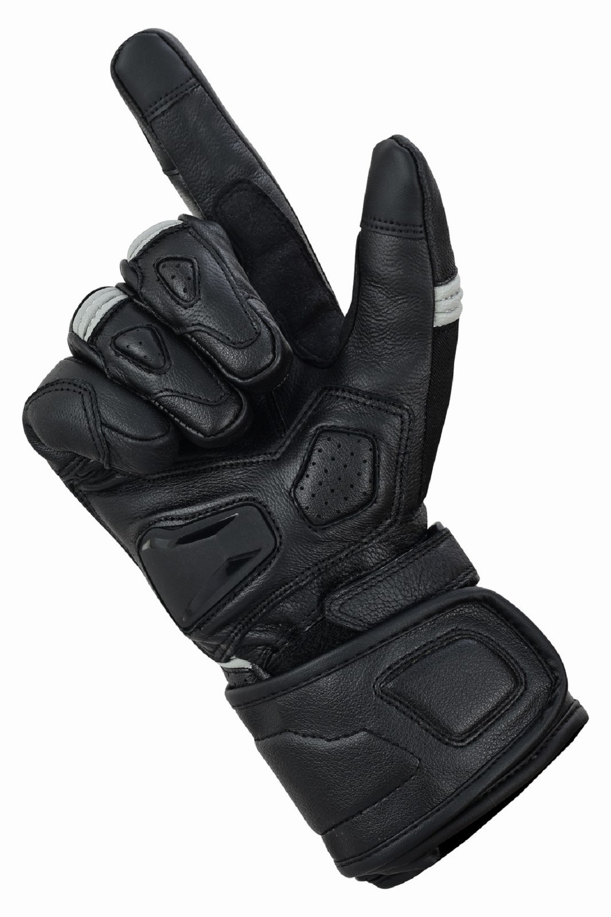 - Inserciones flexibles de piel en acordeón en los dedos y la parte exterior del pulgar que proporcionan apoyo, ajuste y confort.