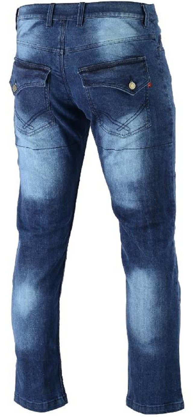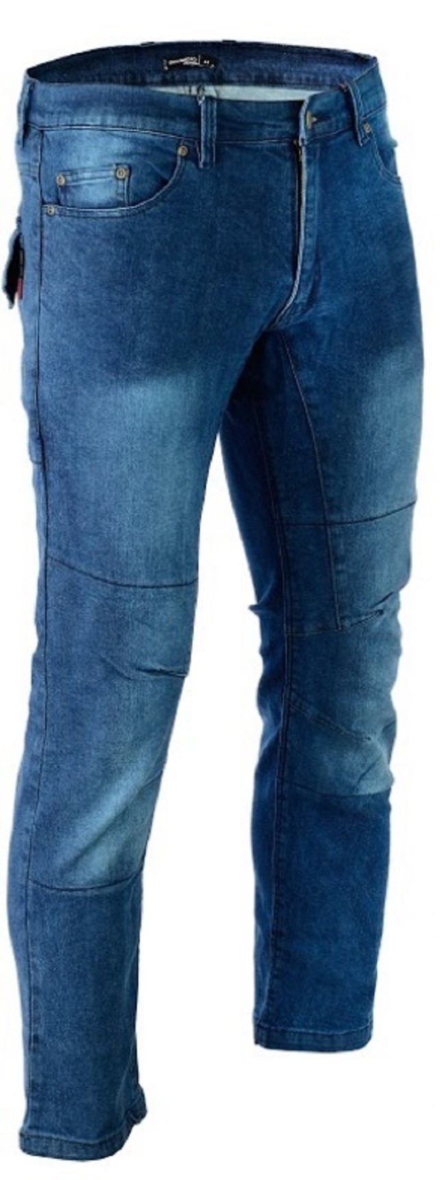 Pantalón vaquero con Kevlar de alta resistencia y protecciones en caderas y rodillas con tejido 100% algodón, lo que hace que sea muy cómodo y suave. Fibra de Kevlar® proporciona a la prenda una gran resistencia contra las caidas.
